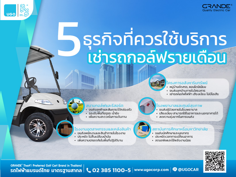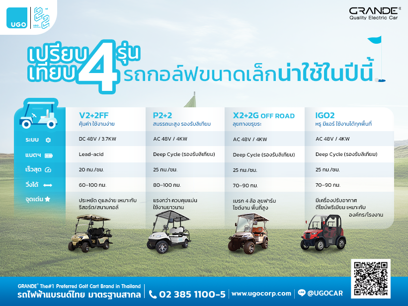 หากท่านมีความสนใจเรื่องรถกอล์ฟ รถไฟฟ้า มือหนึ่ง มือสอง บริการเช่า หรืออะไหล่ สามารถติดต่อและสอบถาม UGO เราพร้อมให้บริการจำหน่ายรถกอล์ฟไฟฟ้า และบริการให้เช่ารถกอล์ฟ ระยะสั้น-ระยะยาว กับทีมงานผู้เชี่ยวชาญเรื่องรถกอล์ฟ ยินดีให้คำปรึกษาแก่ท่านได้ฟรี ไม่มีค่าใช้จ่าย เพียงแอด LINE : @ugocar
