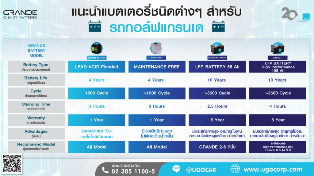 แบตเตอรี่ชนิตต่างๆสำหรับรถกอล์ฟไฟฟ้า GRANDE®